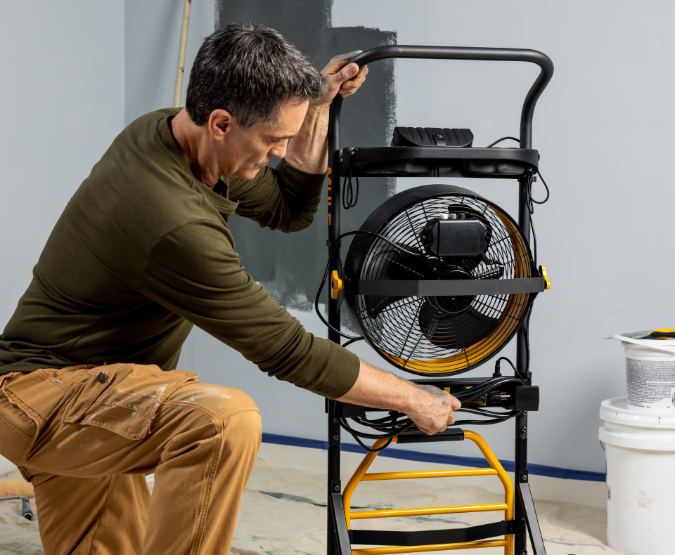 Cool It. Cool your work area. 14” 3-speed fan on wheels. 2500 CFM.